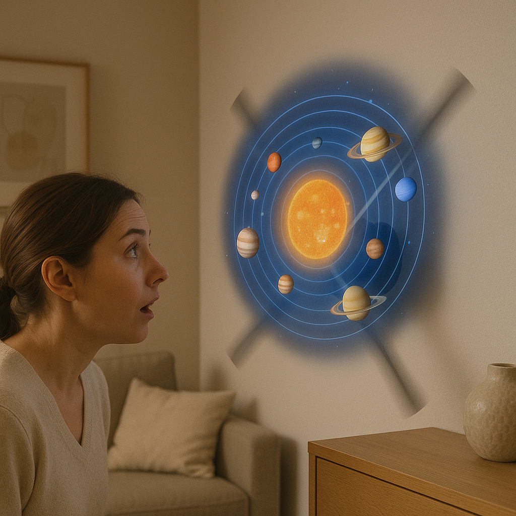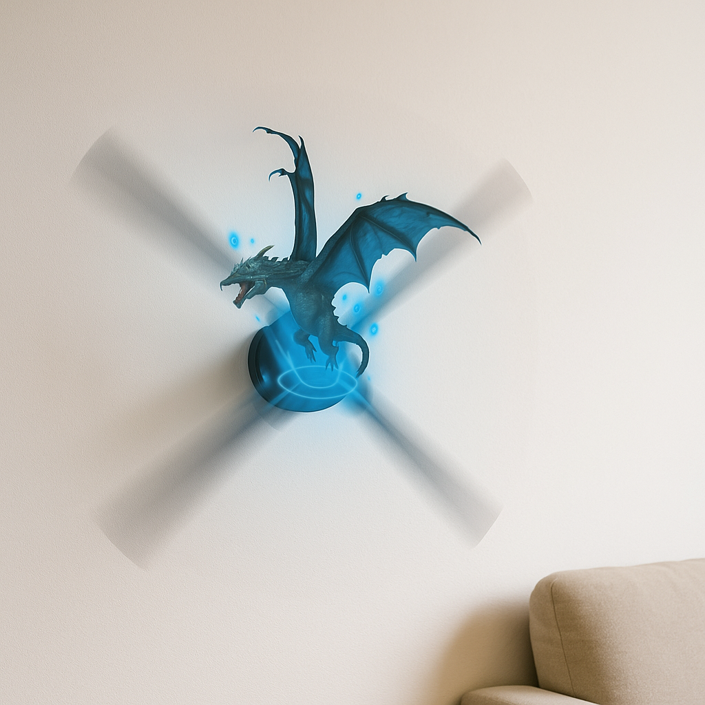 Tak! HOLOGRAM 3D™ nie jest filmowym trikiem ani filtrem AR – to rzeczywista, fizyczna projekcja w powietrzu. Nie potrzebujesz żadnych specjalnych ekranów, okularów czy dymu.
